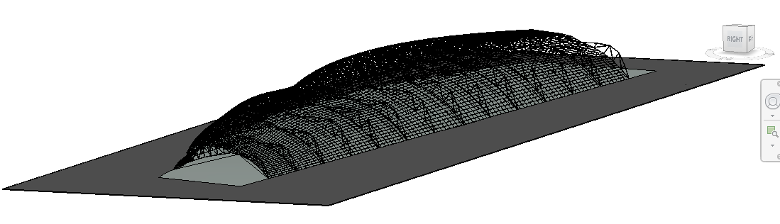 The complete roof model becomes a series of instances of one parametrically modeled arch, varying the span parameter. Two bowstring truss systems form the roof of this structure. .